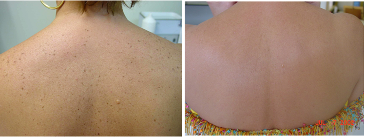 Sunspots, age spots, and pigmented lesions are caused by the release of melanin, a key component of our body’s defense against sun exposure and are typically found on the face, neck, shoulders and other exposed parts of the body. Laser treatments can be performed in order to eliminate skin imperfections and skin irregularities on the body.